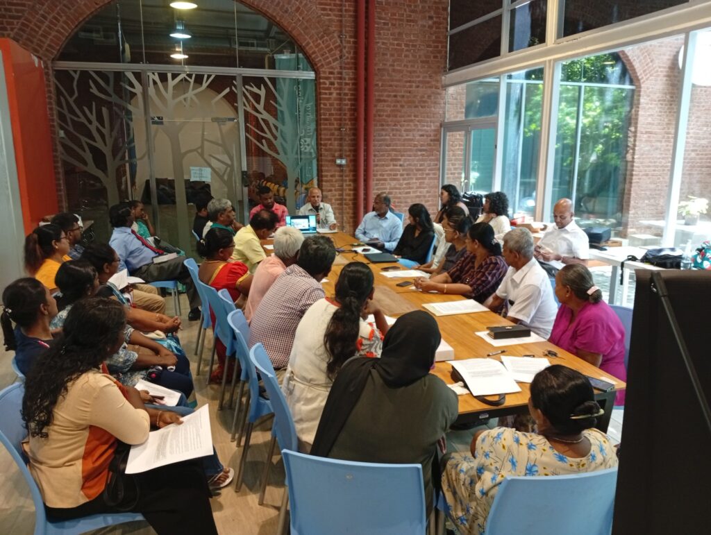 A meeting convened by SEVANATHA Urban Resource Center and Colombo Urban Lab with community leaders in Colombo took place on Friday, November 1, from 9:00 AM at the SLTC, Trace Expert City, Maradana, Colombo 10. About 30 community leaders participated, representing the residents of the settlements and apartments in Colombo city.
